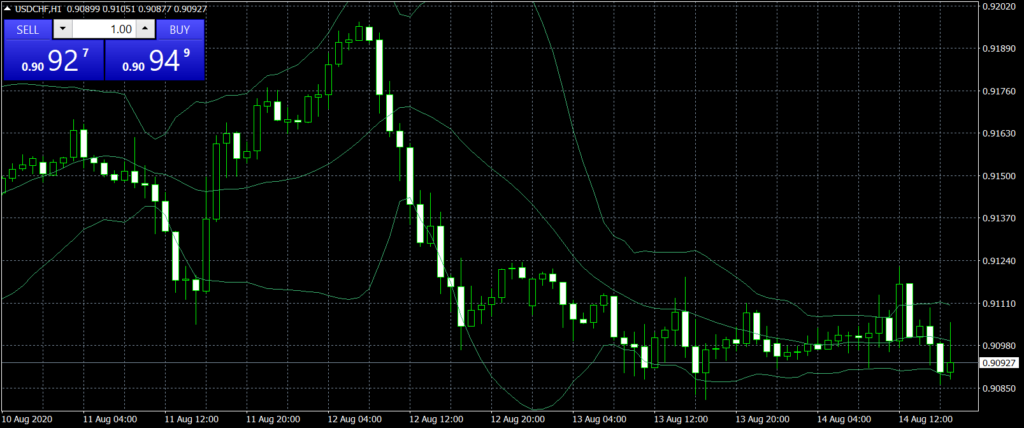 MT4 Bollinger Bands indicator is an oscillator indicator that measures price volatility, helping traders identify if the price is high or low compared to the recent price behaviour. Typically, Bollinger bands are set to 20 periods and usually have three lines. The middle line is the 20-period moving average, and the upper and lower bands indicate if the price is overbought or oversold compared to the 20-day moving average.